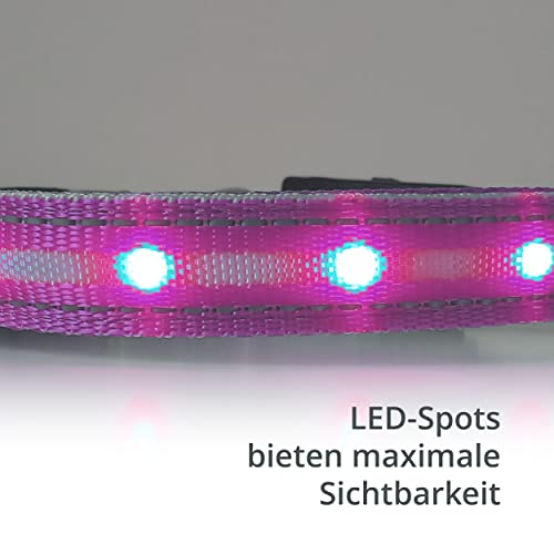 Collare luminoso per cani [L'originale] Collare per cani a LED luminoso per camminare anche al buio, lunga durata della batteria - Sicuro grazie alla chiusura in metallo di alta qualità