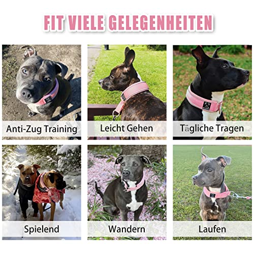Collare per Cani con Morbida Imbottito, Riflettente Nylon Collare a Strozzo, 4cm Largo Anti Tiro Collare da Addestramento, Collare a Semistrozzo per Cani di Taglia Piccola Media Grande Rosa L
