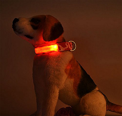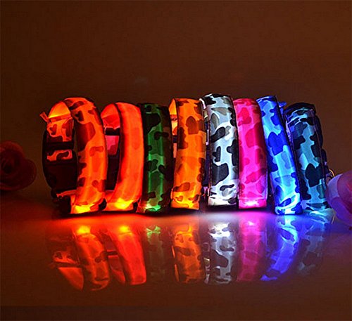 Da.Wa Collare alla moda per cani, motivo mimetico, in nylon, con luci LED lampeggianti per una maggiore sicurezza