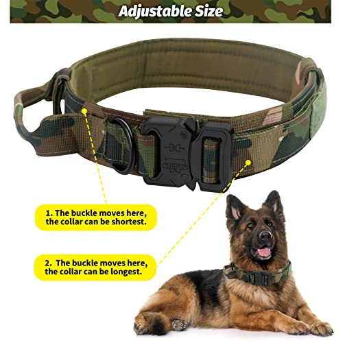 Fibbia in metallo a sgancio rapido: il collare militare per cani adotta un design integrato con fibbia in metallo, sblocco con un clic, facile da indossare e togliere, la fibbia in metallo è regolabile e la lunghezza del collare può essere regolata in base alle dimensioni del collo del cane. Offre una doppia sicurezza per il tuo cane, non cade facilmente.