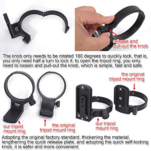 ? L'anello di montaggio del treppiede fa riferimento e modificato dal design standard originale, i dettagli sono migliorati, la caratteristica della piastra a sgancio rapido viene aggiunta al fondo, più pratico del collare dell'obiettivo originale;