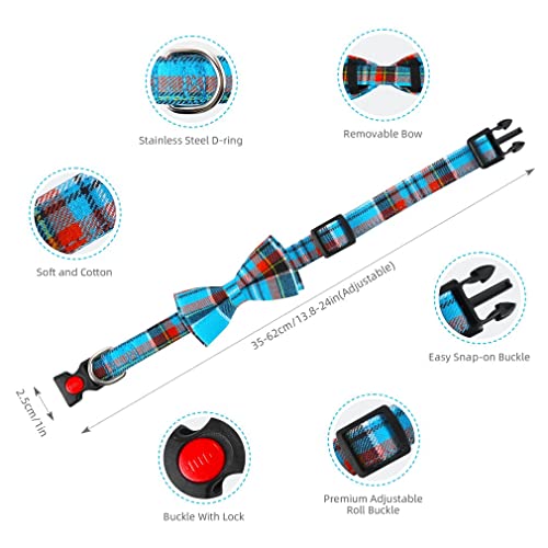 Collare per Cani con papillon Collare per cani- Farfallino Scozzese Regolabile, Comodo e Durevole per Cani e Gatti - Collare per Cani e Gatti di Taglia Piccola, Media e Grande in 3 Stili light blue