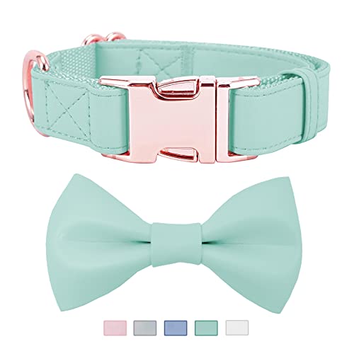 Collare per Cani con Papillon in Morbida Pelle, Regolabile Collare Cravatta a Farfalla Carino [Facile Pulire] con Fibbia in Metallo Oro Rosa Moda per Cani di Taglia Piccola Media Grande Verde XS