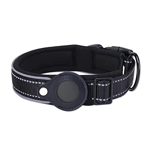 Collare per Cani in Pelle, Localizzatore GSP per Air Tag, Anti-smarrimento e Anti-graffio, per Cani di Taglia Media