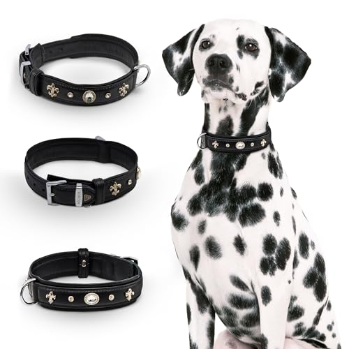 Collare per Cane in Pelle MICHUR Gala Collare per Cane in Pelle Collare in Pelle Nera Pelle con Gigli Strass e Grande Cristallo Disponibile in Diverse Misure