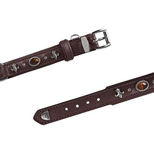 Collare per Cane in Pelle MICHUR Mateo Marrone con Strass di Gigli e Pietra Marrone Grande in Varie Misure