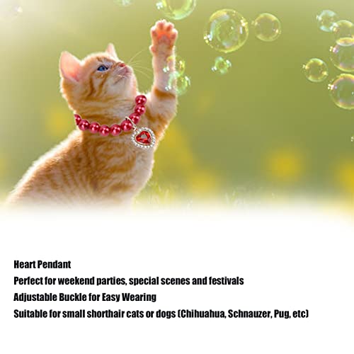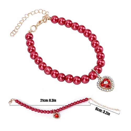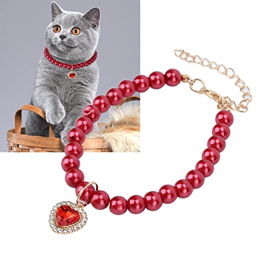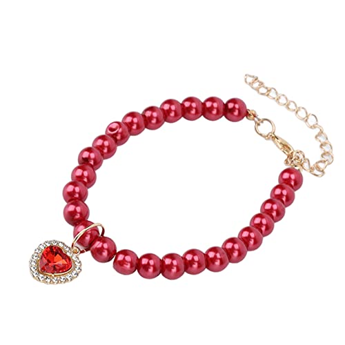Collare di Perle Per Gatti, Collare Per Cani di Perle a Forma di Cuore Collare Per Cani con Strass Regolabile Accessorio Per Collana Per Cani di Perle Per Matrimonio Compleanno(Rosso)