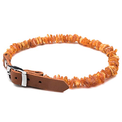 Collare realizzato a mano, totalmente naturale, con ambra baltica grezza, antipulci e zecche, regolabile con cinturino in pelle marrone chiaro, per cani e gatti