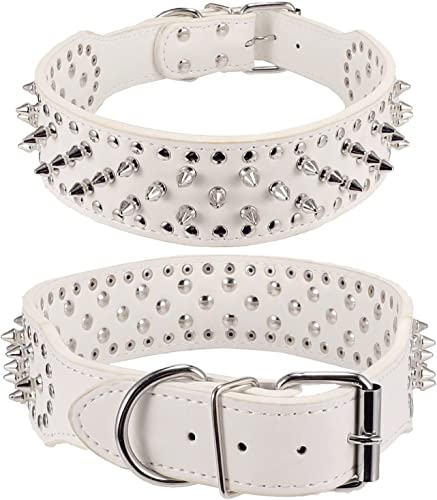 Collare per cani a spillo borchiato 5,1 cm largo Spikes funghi Cat Collari per taglia piccola, media grande taglia bianca M