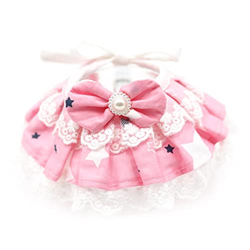 Collare con stampa floreale per cani e gatti e cuccioli, fiocco in pizzo con stampa floreale, con bretelle rosa # - XS