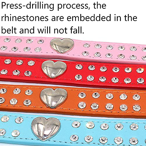 2. Materiale: il collare è realizzato in morbida pelle di alta qualità e hardware in lega di zinco. È di colore brillante, resistente e non arrugginito. È decorato con due anelli di diamanti di cristallo scintillanti oro e cuori lucidi.