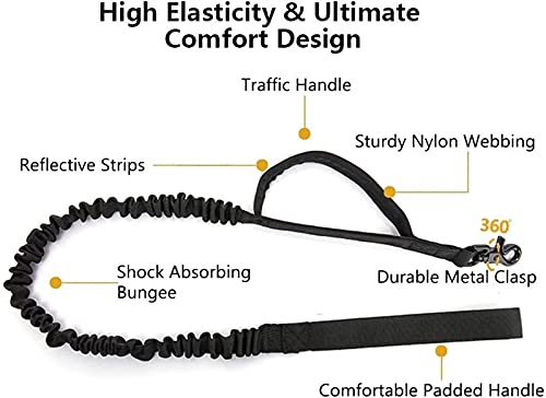 Mantenere il vostro cane in pista con la prima presa e il secondo utilizzato come una presa di traffico in modo competente per guidarlo attraverso la folla e prevenire tafferugli con altri cani. Per cani di taglia media e grande. La lunghezza è di 97 cm / 38 pollici e si estende fino a 150 cm / 59 pollici. Guinzaglio elastico per cani bungee che riduce il rischio di lesioni e aumenta il comfort.