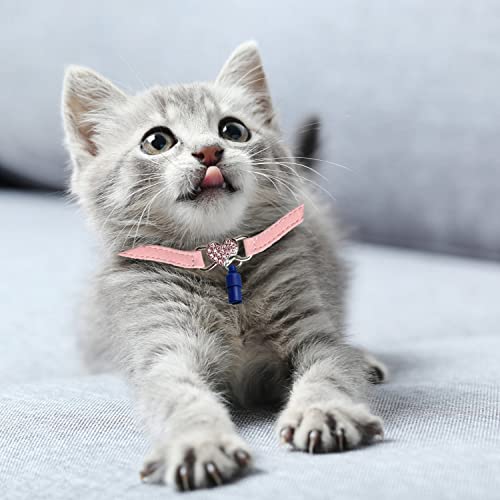 2 collari regolabili, collare per animali domestici, collare per gattini a forma di cuore, con 2 ciondoli per animali domestici per gattini, cuccioli e altri piccoli animali domestici (rosa, blu)