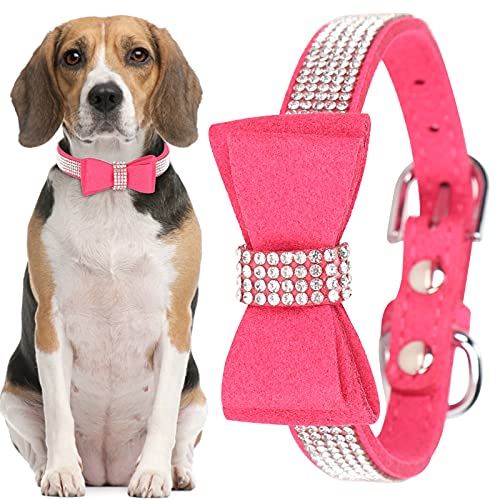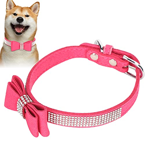 Collari per Cani con Strass, Collari per Cuccioli di Strass Collari per Cani in Cristallo con Farfallino in Microfibra Scamosciata con Doppio Fiocco in Cristallo Sparkle Pet Supply(Rose Red S)