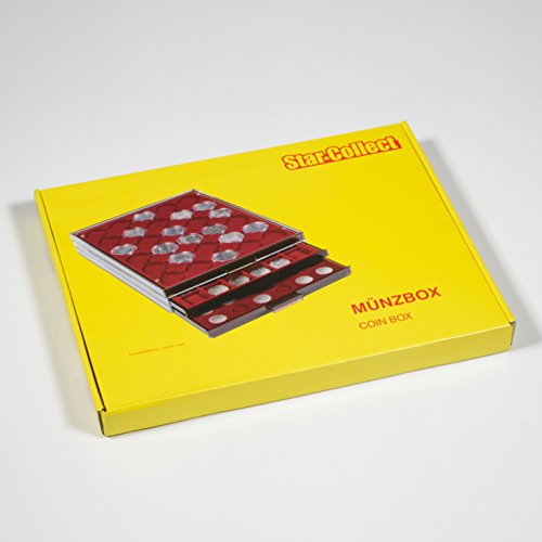 Ordinato: la suddivisione del comparto consente di ordinare monete commemorative, da collezione e da collezione senza capsula e con capsule Star Collect o Leuchtturm (dimensioni interne 33 mm, dimensioni esterne 39 mm)