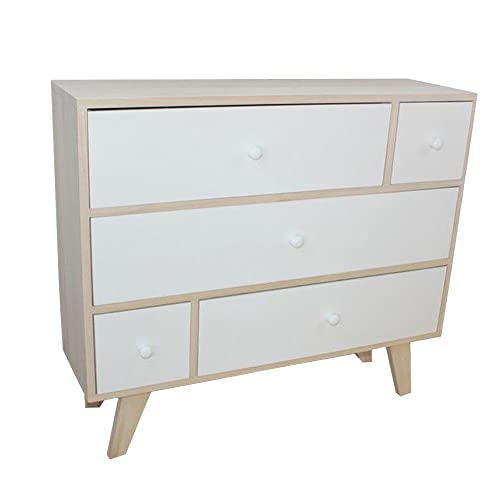 King Collection King Home C1708006 Mobiletto 5 Cassetti in Legno di Paulownia con Piedini in KD