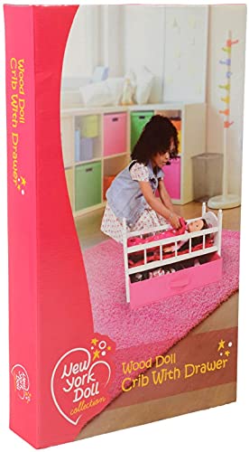 The New York Doll Collection Culla per Bambole in Legno con Cassetto per Bambole da 18 Pollici / 46 cm