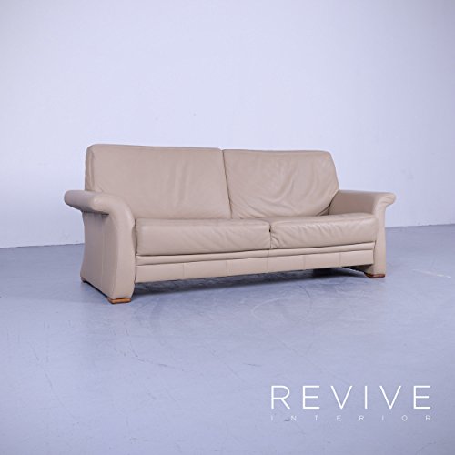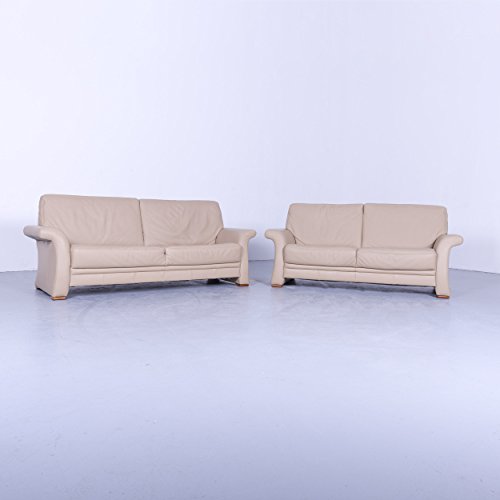 EURI Collection Designer Leder Sofa Garnitur Beige Dreisitzer Couch Zweisitzer Echtleder #4941