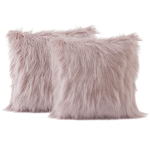 3C Collection Set di 2 Federe Cuscino Peloso Lilla 45 x 45 cm, Copricuscini Pelliccia Moderni Decorativi per Divano Letto con Cerniera