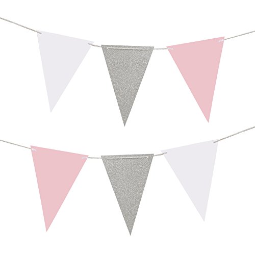 LUCK COLLECTION Pink Silver White Tema Baby Shower Party Decorations Matrimonio Compleanno Forniture-Palloncini Paper Pom Pom e Triangle Banners