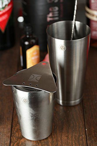 The Elan Collective Boston Cocktail Shaker Set | 7 pezzi con shaker Boston in acciaio inox Boston, massa, colino Hawthorne, colino a maglia fine, cucchiaio da bar e pestello in acciaio inox spazzolato