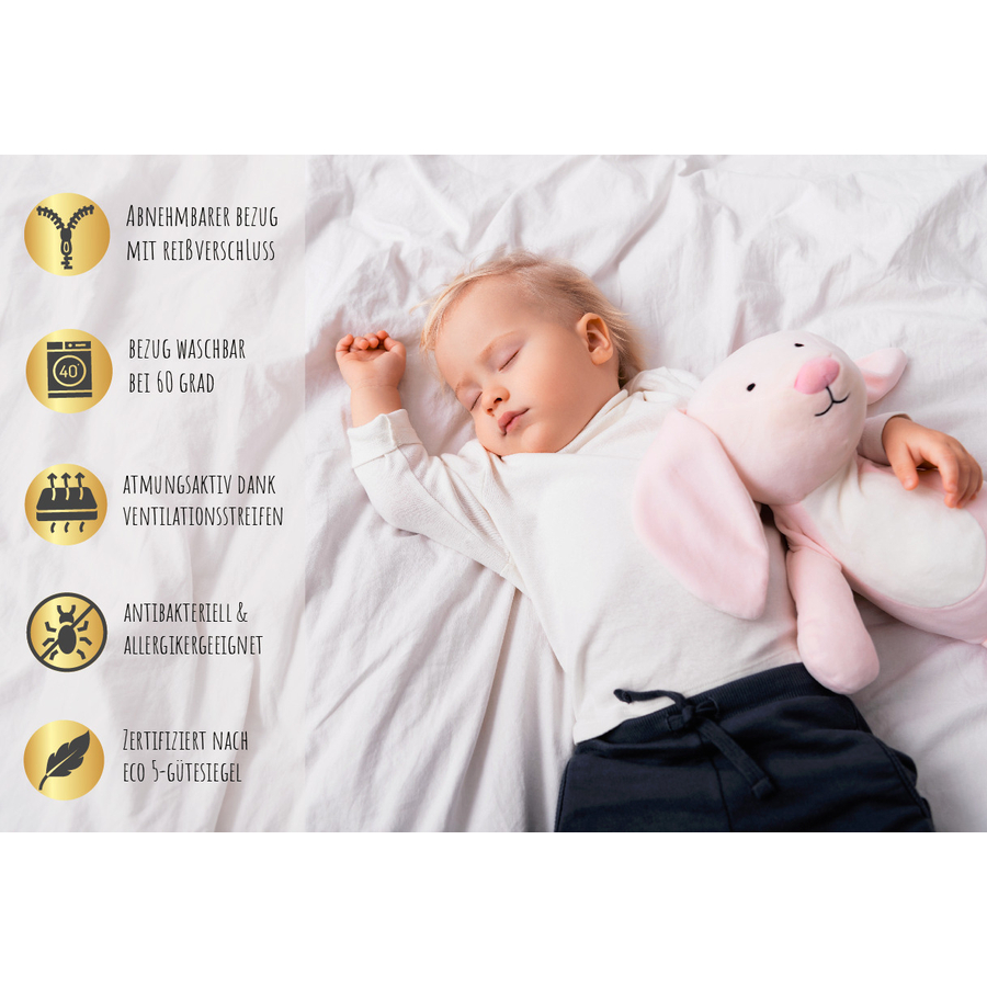 Il mito che i buoni materassi debbano essere costosi è stato sfatato molto tempo fa. Abbiamo sviluppato un ottimo materasso di base per bambini in cinque misure che non solo soddisfa i nostri standard elevati, ma può anche sostenere pesi fino a 60 kg. È traspirante, si adatta molto bene al corpo del bambino grazie alla sua elasticità puntiforme e, naturalmente, è facile da pulire se qualcosa va storto, grazie alla fodera sfoderabile e al lenzuolo in omaggio della misura giusta. Il materasso è adatto a chi dorme sul fianco, sulla pancia e sulla schiena, ha un effetto regolatore dell'umidità, dissipa il calore e offre ai nostri bambini un sonno riposante a tutto tondo. Le notti sono tranquille e il mattino può iniziare con piena energia. MATERASSO PER BAMBINI: materasso in schiuma fredda elastica e puntiforme, con una consistenza perfettamente armonizzata per i bambini fino a tre anni. Il materasso si adatta bene al corpo del bambino in qualsiasi posizione e si adatta a qualsiasi culla di dimensioni 70x140 cm. ECO 5-CERTIFICATO: la certificazione tessile eco5 garantisce test approfonditi sul processo di produzione. Non ci sono sostanze nocive, tutto è a misura di bambino e di neonato. OTTIMA CIRCOLAZIONE DELL'ARIA: la schiuma traspirante e il rivestimento di alta qualità garantiscono una buona circolazione dell'aria e il miglior sonno per il vostro bambino. L'umidità viene assorbita rapidamente, rendendo questo materasso antibatterico e adatto a chi soffre di allergie. PRODOTTO DI QUALITÀ EUROPEA: produciamo nel cuore dell'Europa con 50 anni di esperienza nella produzione di materassi per neonati e bambini. Come genitori, sappiamo che un buon sonno è la cosa più importante per i nostri piccoli. IL MIGLIOR SONNO PER IL TUO BAMBINO: lo abbiamo testato. Con un'eccellente dissipazione del calore, un sostegno sufficiente e un'elevata permeabilità all'aria, questo materasso soddisfa tutti i requisiti per un sonno perfetto per i bambini. Contenuto del materiale: 100% poliure