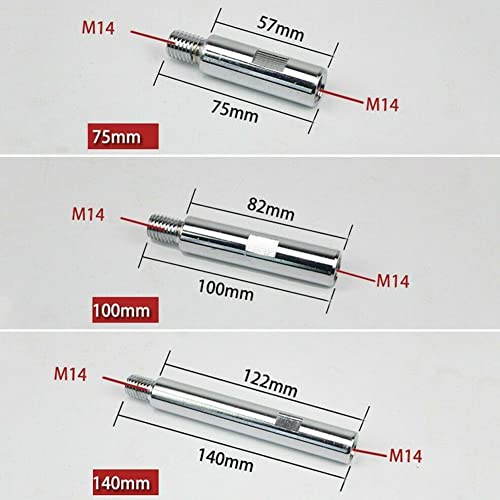 N.P Asta di collegamento di estensione della smerigliatrice angolare, M14 Angle Grinder Rotary Extension Shaft adattatore filettatura, lucidatura e rettifica, 75/100/140mm, argento, 3pcs