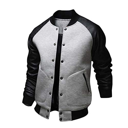 Uomo College Baseball Giacca Giubbotto Jacket Ecopelle Maniche Lunghe Sportive Felpa Giacce Grigio Chiaro L
