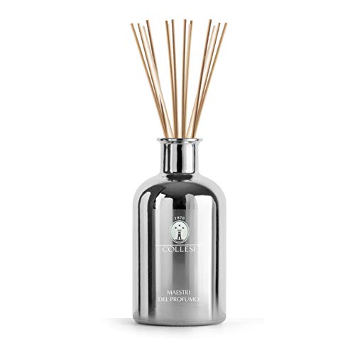 Collesi - Kit Profumatore Ambiente con Bastoncini -Personalizza il tuo kit- Include Fragranza Ambra 300ml e Diffusore Argento Metallizato in Vetro 500ml - Effetto a specchio - Made in Italy
