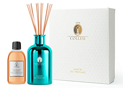 Collesi - Kit Profumatore Ambiente con Bastoncini -Personalizza il tuo kit- Include Fragranza Pompelmo Rosa 300ml e Diffusore Celeste Metallizato in Vetro 500ml - Effetto a specchio - Made in Italy