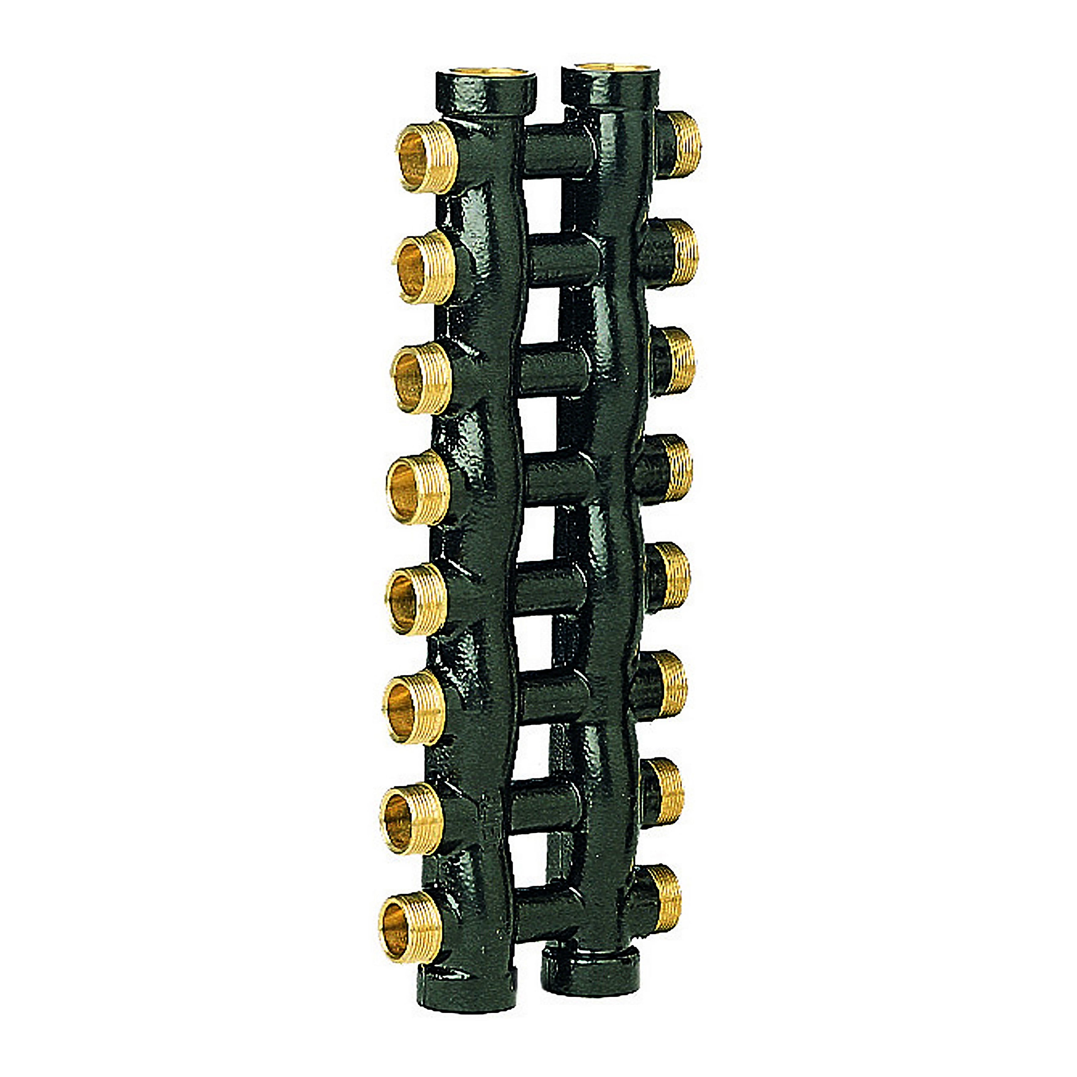 Collettore complanare 3/4" x 1/2" 8+8 attacchi. I collettori complanari sono generalmente utilizzati per la distribuzione del fluido termovettore negli impianti di climatizzazione. Forniti di attacchi bilaterali permettono il collegamento a raccordi per ubazioni in rame, materiale plastico e multistrato.. I collettori complanari sono generalmente utilizzati per la distribuzione del fluido termovettore negli impianti di climatizzazione ;