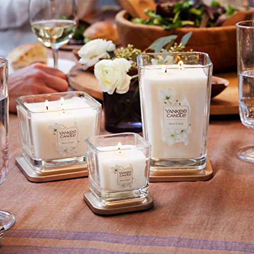 Collezione Yankee Candle Elevation con Coperchio della Piattaforma Piccola Candela Quadrata a 1 Stoppino, Sheer Linen