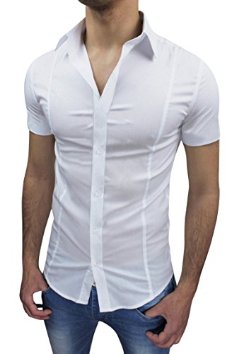 AK collezioni Camicia Uomo Slim Fit Bianca Aderente Elasticizzata Manica Corta Casual (L)