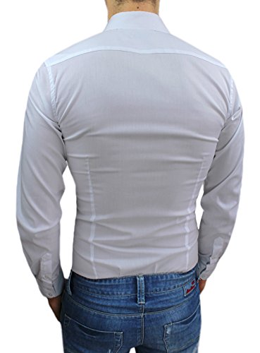 AK collezioni Camicia Uomo Sartoriale Bianco Slim Fit Aderente Maniche Lunghe Casual Elegante (S)