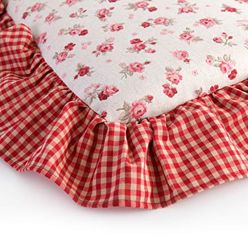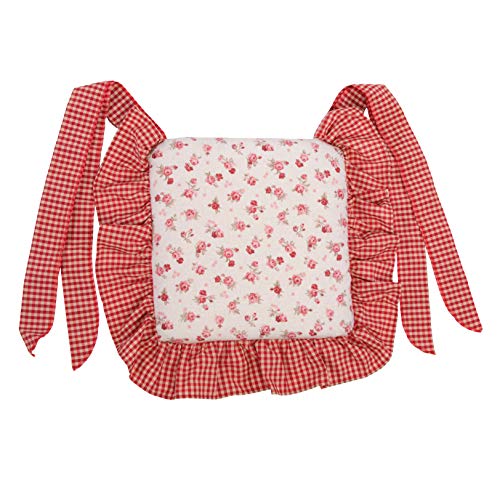 ANNA COLLEZIONI Cuscino sedia sfoderabile 40x40 cm in Fantasia di Roselline Rosse con Volano e Fiocchi in Puro Cotone con Seduta molto Confortevole e Indeformabile