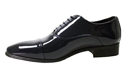 AK collezioni Scarpe uomo Class eleganti blu scuro lucide vernice linea classica (44, nero)