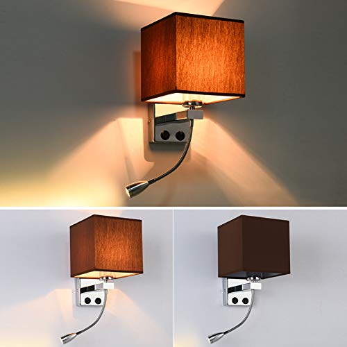 KTOL Set Di 2 Collo Di Cigno Lampada Da Lettura Lettura Luce Con Interruttore, Led Bianco Caldo Lampada Da Comodino Con Paralume In Tessuto E27 Applique Da Parete Per Corridoio Camera Da Letto