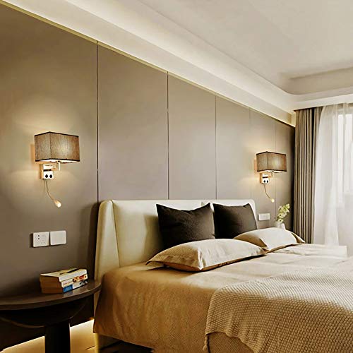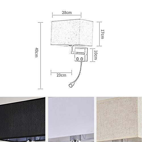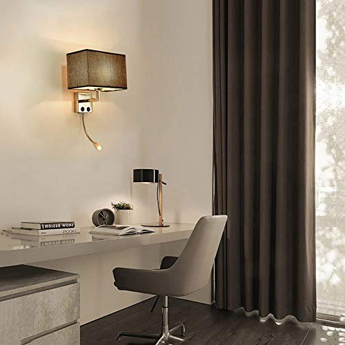 KTOL Collo Di Cigno Led Lampada Da Lettura Con Interruttore, Lettura Luce Con Paralume In Tessuto E27 Metallo Regolabile Applique Da Parete Lampada Da Comodino 3000k-nero Bianco Caldo