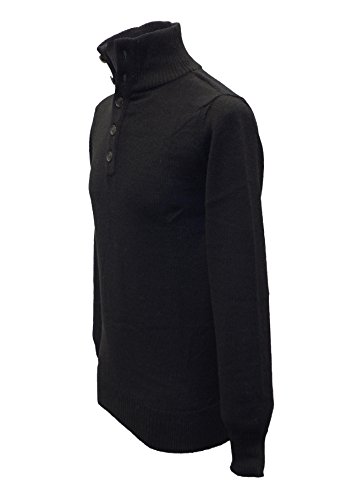Posh Gear Uomo Collo MAO Maglione Pullover Lupetto 100% Lana di Alpaca, Nero, Taglia S
