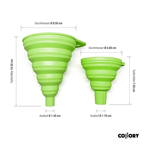 ✔ Uso universale: collory imbuto sono un perfetto aiuto pieghevole per la vostra cucina e bilancio. Adatto per travaso di liquidi, polvere e spezie e sale, zucchero o pepe. Le due diverse grandi imbuto sono versatili se opere per gita, in casa o in officina per olio o refrigeratore antigelo nel settore automobilistico.