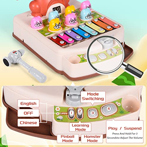 【Gioco Divertente di Martellamento】Il gioco di martellamento include 3 modalità: modalità di apprendimento, modalità flipper, modalità criceto, quando si vince si passa al livello successivo, la cui difficoltà aumenta man mano che si avanza. Viene fornito con 5 flipper, 1 martello, 2 bacchette. Quando si martella, si sentono urla vivaci e luci lampeggianti per attirare l'attenzione dei bambini. Sono necessarie 3 batterie AA (non incluse!).