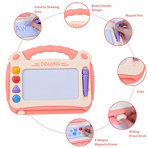 Colmanda Lavagna Magnetica per Bambini, Doodle Magnetico Cancellabile Regalo, 4 Colori Colorati Lavagnetta Magica Portatile Cancellabile, Lavagna Magnetica Educativi Regalo per 3+ Anni Bambini (Rosa)