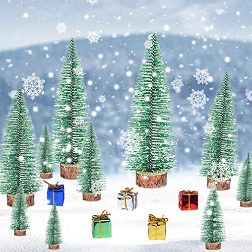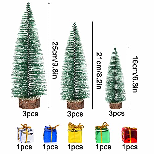 Colmanda 9 Pezzi Mini Alberi di Natale Artificiali, Mini Alberi di Natale + 5 mini Scatole Regalo, Mini Sisal Snow Frost Trees per Decorazione Della Tavola, Vetrina, DIY Modello Micro Landscape