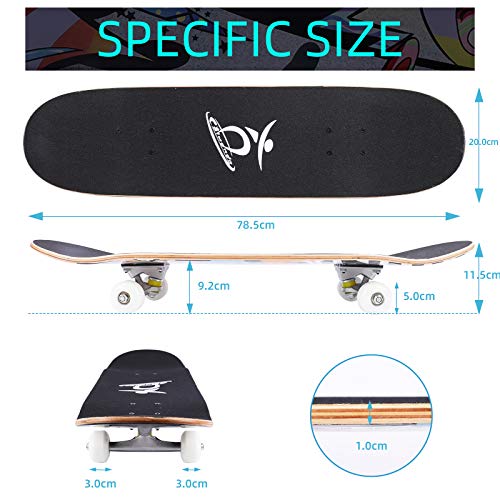 Durevole e Sicuro - Lo skateboard realizzato con 7 strati di legno di acero canadese di alta qualità, è forte e durevole e supporta ciclisti fino a 100 kg.