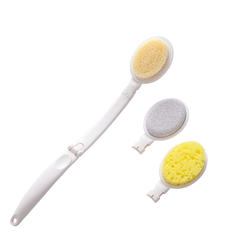 2) SPUGNA DA BAGNO per creare una schiuma vellutata che stimola la pelle. 3) PIETRA POMICICE per lo scrub dei piedi, la pulizia dei piedi, l'ammorbidimento dei piedi rimuovono la pelle e ammorbidiscono la tua pelle e liscia. Spazzola da doccia resistente e dal manico lungo con un design antiscivolo e un'angolazione speciale per il lavaggio della schiena. Può anche essere usato per schiaffeggiare e massaggiare le parti del corpo per rilassarsi, come collo, spalle e schiena. Questo scrubber con manico lungo pieghevole può essere piegato a metà per riporlo ed è facile da trasportare e riporre per i viaggi e l'esercizio fisico all'aperto. Un foro sul manico per appenderlo ad asciugare. Un gancio adesivo è incluso gratuitamente. Il nostro