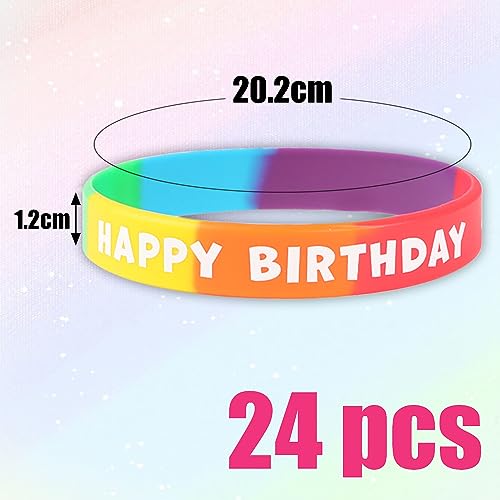 COLOFALLA 24Pz Braccialetti Silicone Arcobaleno Compleanno Braccialetto Gomma Colorati Bracciale Scritte Happy Birthday Decorazioni Compleanno Festa Regalo Accessori Compleanno Gadget (A)