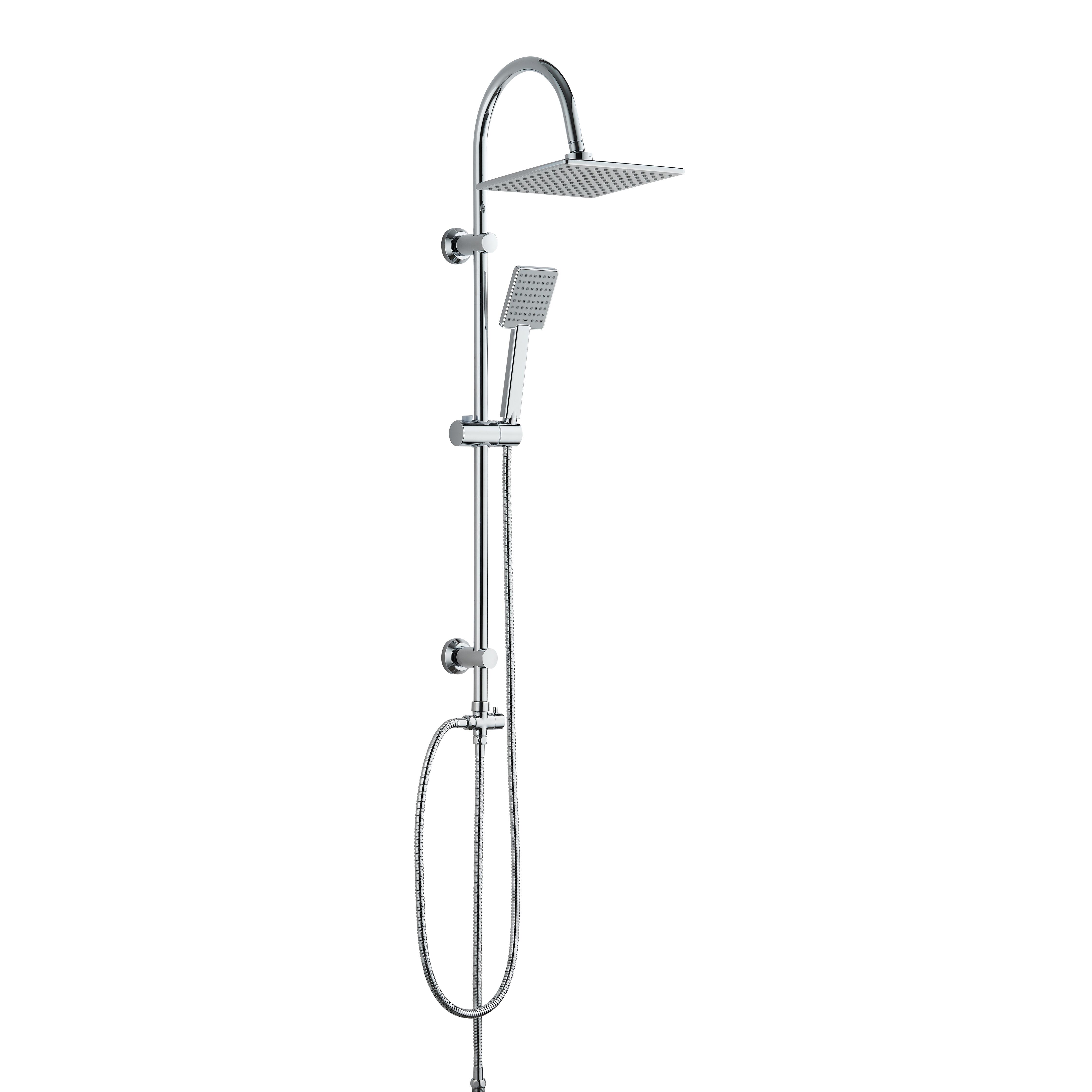 Soffione orientabile quadrato 20x20 cm 1 getto e doccetta in ABS cromato Asta in ottone cromato, Necessita di rubinetto separato. Può essere adattata ai fori esistenti.. Per una manutenzione ottimale del prodotto, si raccomanda di pulire regolarmente gli ugelli e le superfici con un panno morbido, utilizzando detergenti delicati.