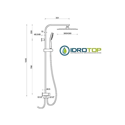 Colonna Doccia CONCEPT2 soffione 30x30cm e Doccetta Quadro 2F SQUARE Cromata Ponsi