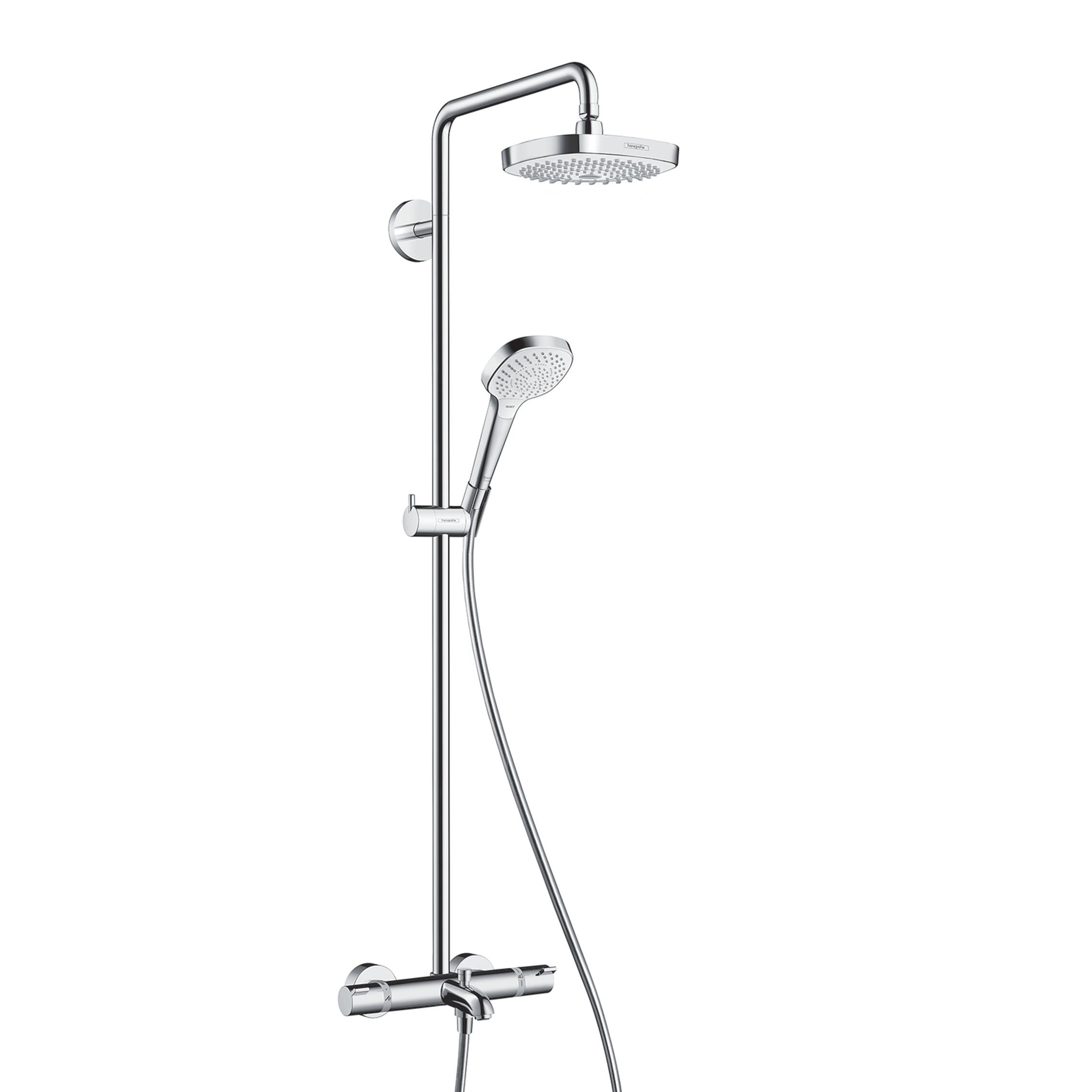 Miscelatore termostatico con ugelli anticalcare, soffione orientabile quadrato 18x18 cm 2 getti e doccetta in ABS .Asta in ottone cromato lucido,. Doccia effetto pioggia, sistema anticalcare con ugelli morbidi per una pulizia più facile e duratura. Il sistema "cold touch", mantiene freddo il rubinetto ed evita eventuali scottature. Il blocco di sicurezza preimpostato a 38°C protegge da eventuali scottature