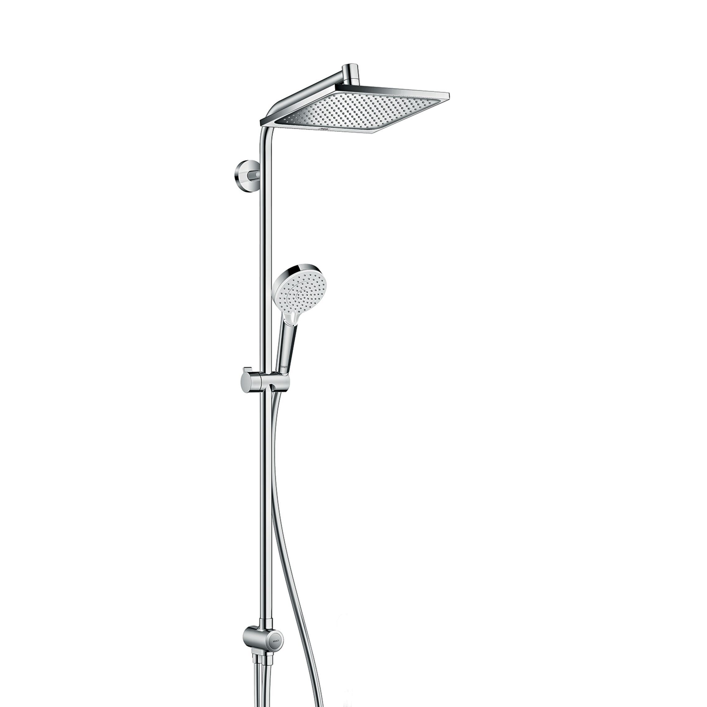 Asta in ottone cromato lucido, doccetta e soffione orientabile quadrato 24x24 cm in abs. Necessita di rubinetto separato,Risparmio Idrico. Sistema anticalcare con ugelli morbidi per una pulizia più facile e duratura. Il blocco di sicurezza preimpostato a 38°C protegge da eventuali scottature. La tecnologia risparmio d'acqua consente di evitare sprechi fino al 50%